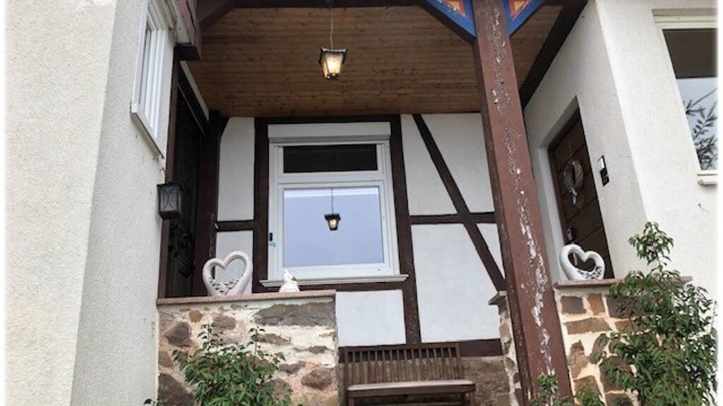 Aufgrund der Hanglage, die Ihnen eine großartige Aussicht bietet, ist der Hauseingang sowohl über eine Außentreppe als auch über das Waldgrundstück erreichbar. Oben angekommen, befindet sich links die charmante Altbau-Doppelhaushälfte, die 1929 in solider Bauweise errichtet wurde. Diese bietet eine Wohnfläche von etwa 150 m², verteilt auf sechs Zimmer, eine Küche, zwei Flure, zwei Badezimmer und ein Gäste-WC. Die Räume sind großzügig gestaltet und zeichnen sich durch die für Altbauten typische Deckenhöhe aus. Zusätzlich gibt es einen großen Balkon, einen Keller- und Hauswirtschaftsraum sowie einen Dachboden. Das Haus verfügt über einen offenen Kamin und größtenteils doppelt verglaste Fenster. Die letzten Renovierungsarbeiten wurden in den 1990er-Jahren durchgeführt, daher ist vor dem Einzug eine gründliche Sanierung erforderlich. Dies gibt Ihnen die Möglichkeit, die Räume nach Ihren Vorstellungen zu gestalten und den historischen Charme des Gebäudes mit modernen Akzenten zu kombinieren.