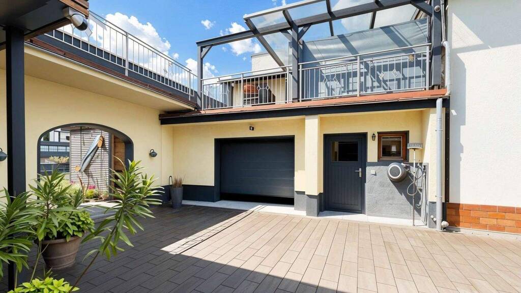 Außenbereich Neben den Kellerräumen und einer großzügigen Garage überzeugt das Haus durch einen gemütlichen Innenhof, der vielfältige Nutzungsmöglichkeiten bietet - ob als Grillplatz, Sitzbereich oder zusätzlicher Stellplatz für Fahrzeuge. Ein modernes elektrisches Tor sorgt dabei für Komfort und Privatsphäre.