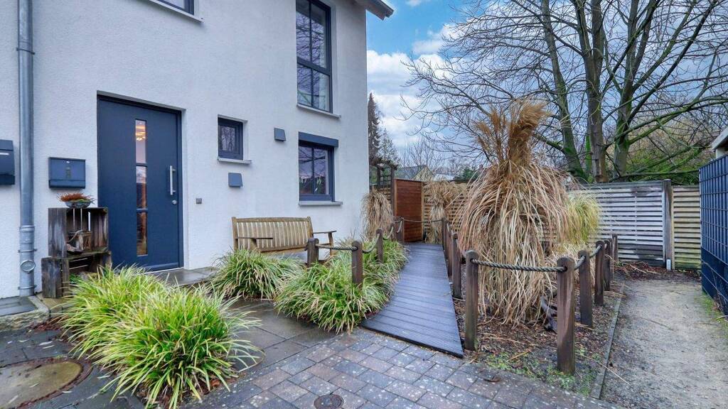 Eine moderne Lüftungsanlage sorgt ganzjährig für ein angenehmes Raumklima, während die teilweise installierte Fußbodenheizung zusätzlichen Wohnkomfort bietet. Sicherheitsschlösser erhöhen den Einbruchschutz. Der Außenbereich wird durch einen stilvollen Mahagonizaun eingefasst, der dem Grundstück eine hochwertige und zugleich warme Ausstrahlung verleiht. Ein eigener Stellplatz rundet dieses attraktive Angebot ab.