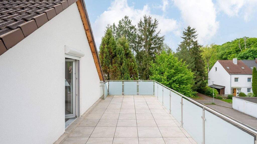 Das Dachgeschoss bietet zwei weitere Zimmer, die je nach Wunsch als zusätzliche Kinder-, Arbeits- oder Gästezimmer genutzt werden können. Darüber hinaus stehen ein eigenes Badezimmer mit Dusche sowie eine ca. 26,23 m² große Dachterrasse zur Verfügung. Im Keller befinden sich neben einem Hauswirtschaftsraum ein großzügiger Hobbyraum welcher sich ideal als zusätzlicher Stauraum oder beispielsweise auch als Fitnessbereich nutzen lässt.
