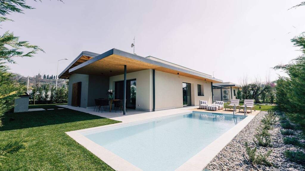 In einer neuen und ruhigen Wohngegend, nur wenige Minuten vom See und der Altstadt entfernt, bieten wir eine freistehende Villa mit natürlichem, minimalistischem Charakter und luftigen, hellen Räumen an.