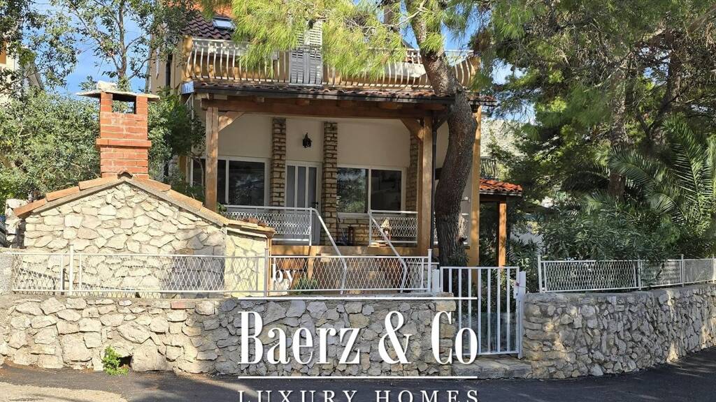 pan attractive house located right on the beach, with an area of 196 m² on a plot of 400 m². it consists of a ground floor and an upper floor. the ground floor features an apartment with a kitchen, dining area, living room, two bedrooms, a bathroom, covering an area of 50 m², as well as a covered terrace of 17 m². the upper floor has an identical apartment with a separate entrance from the side of the house and a terrace of 12 m². the house also has a basement area of 12 m² and a garage of 15 m². in front of the house, there is a spacious garden full of mediterranean plants, a covered lounge area, a barbecue, a summer kitchen and outdoor showers. parking in the yard is available for five cars, and there is also a boat dock for boat up to 12 meters in length./p pfrom all parts of the house and from all the terraces, there is a beautiful open view of the sea. it is ideal for personal use but also as an investment for tourism purposes, considering the two completely separate and fully equipped apartments./p pit is located in the beautiful mediterranean town of grebastica, just 15 km from the city of Sibenik./p pmore information available upon request./p