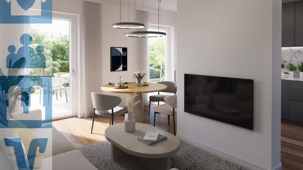 Die Häuser begeistern nicht zuletzt mit ihrer energieeffizienten und nachhaltigen Bauweise im KfW 55-Standard. Außerdem verfügt das Gebäude über eine Luftwärmepumpe.