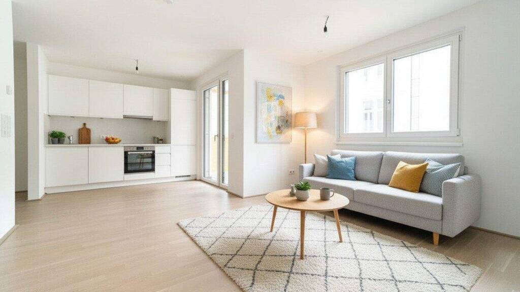Die angeführten Fotos sind Beispielbilder einer bereits fertiggestellten Wohnung oder KI Visualisierung im Projekt.