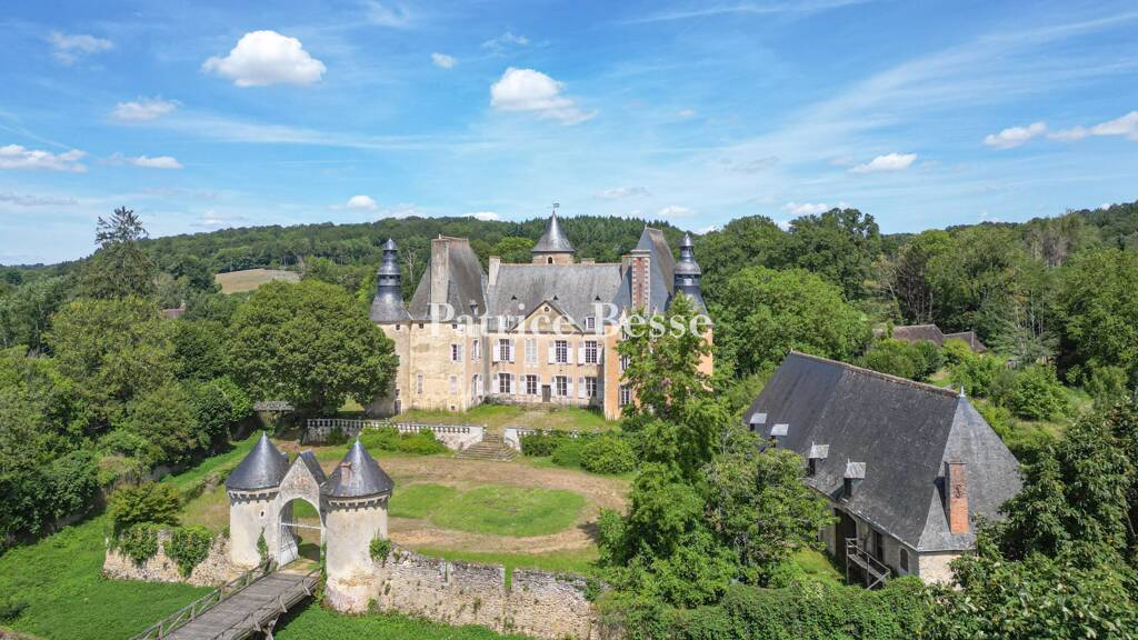 A 15th-century castle and listed historical monument with independent houses for restoration with an estate of more than 30 hectares, in the Perche area of the Sarthe department.