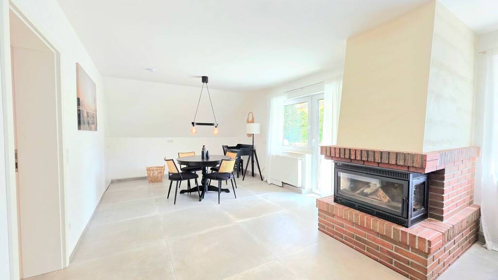 Sie verfügt über drei Zimmer, darunter zwei Schlafzimmer, die viel Platz zum Wohlfühlen bieten. Das Badezimmer ist modern gestaltet und funktional ausgestattet. Ein Kamin im Wohnbereich sorgt an kühleren Tagen für eine behagliche Atmosphäre.