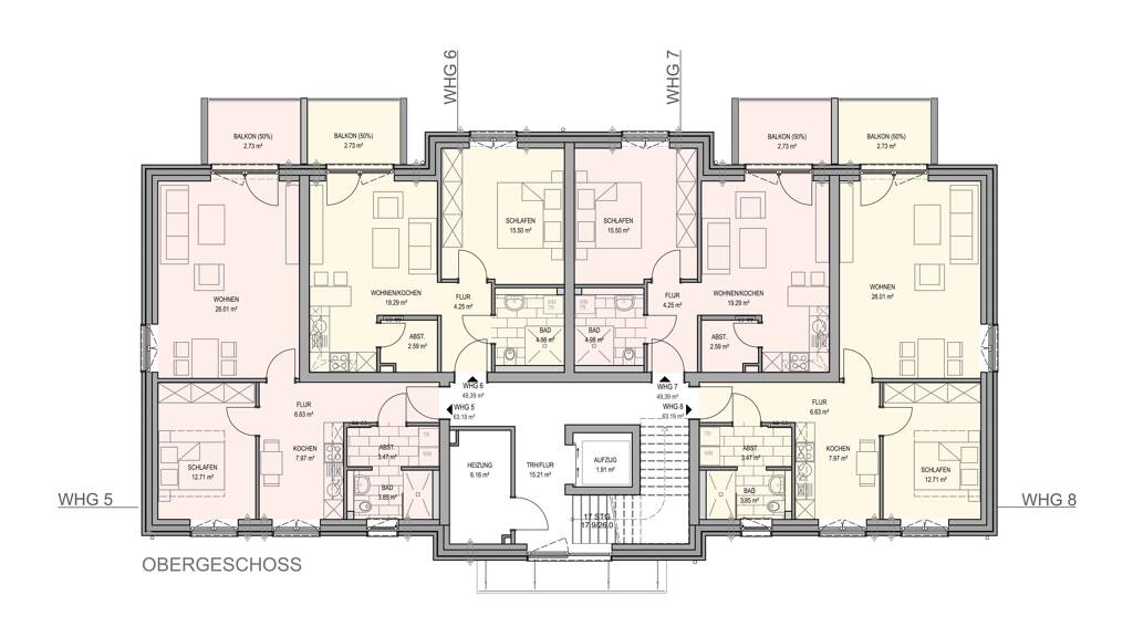 Mit diesem besonderen Neubauprojekt werden Ihnen hier erstklassige, altersgerechte Eigentumswohnungen in einmaliger Wohnqualität angeboten. In der aktuellen Zeit ist besonders die von fossilen Brennstoffen unabhängige Energieversorgung, welche mit Photovoltaik und Wärmepumpen befeuert wird, hervorzuheben. Helle, große Fensterflächen laden zum Wohlfühlen ein. Eine hochwertigen Ausstattung wie Wohnungslüftungssystem mit Wärmerückgewinnung, Personenaufzug, elektrische Kunststoff-Rollläden, Freisprecheinrichtung inkl. Videofunktion, Fußbodenheizung, Fliesenböden/Vinyl Designboden, Glasfaseranschluss, Einbauküche uvm. sind nur einige der enthaltenen Annehmlichkeiten. In den 12 Wohnungen im Erd-, Ober- und Dachgeschoss spiegelt sich die moderne Architektur des Stadthauses wider. Die Wohnungsgrößen variieren zwischen 43 m² und 63 m². Eine durchdachte Raumaufteilung bietet den größtmöglichen Nutzen der einzelnen Wohnräume. Eine der Wohnungen im Erdgeschoss stellt zudem eine behindertengerechte Ausstattung dar.