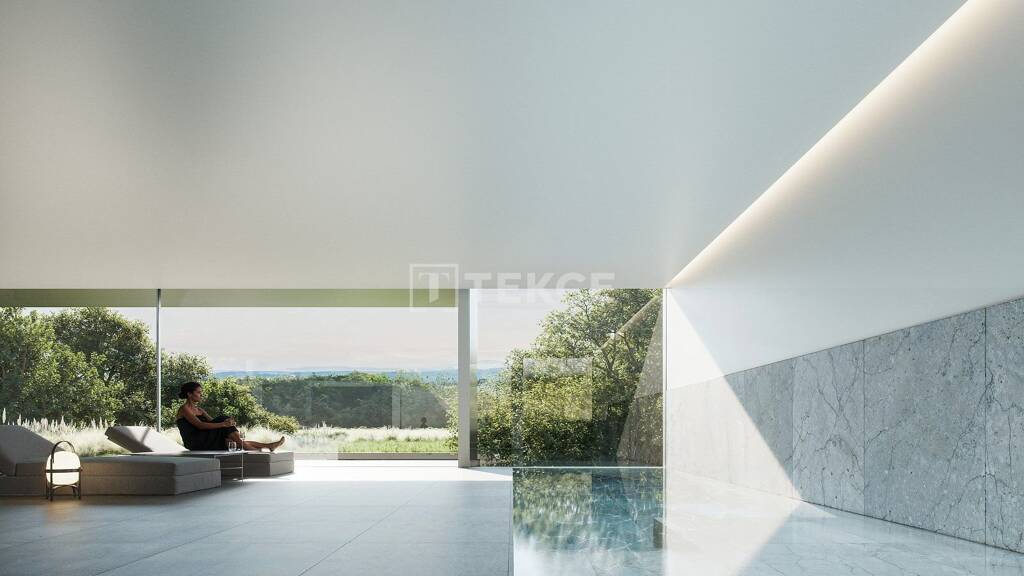 Die Villa bietet eine Gesamtfläche von 1.742 m², die sich auf ein Volumen verteilt, das sich über das gesamte Grundstück erstreckt an. Die Villa verfügt über geräumige Wohnbereiche mit 8 Schlafzimmern und 9 Bädern, große Terrassen, einen Wellnessbereich mit einem beheizten Innenpool, eine Sauna, einen Fitnessraum, einen Kinoraum, eine Bibliothek und eine Waschküche. Es gibt auch ein Gästehaus mit 2 Schlafzimmern und separatem Eingang. Das Haus profitiert von erneuerbarer Energie, die seinen gesamten Bedarf deckt, und nutzt ein Geothermiesystem mit Solarmodulen und Batterien.