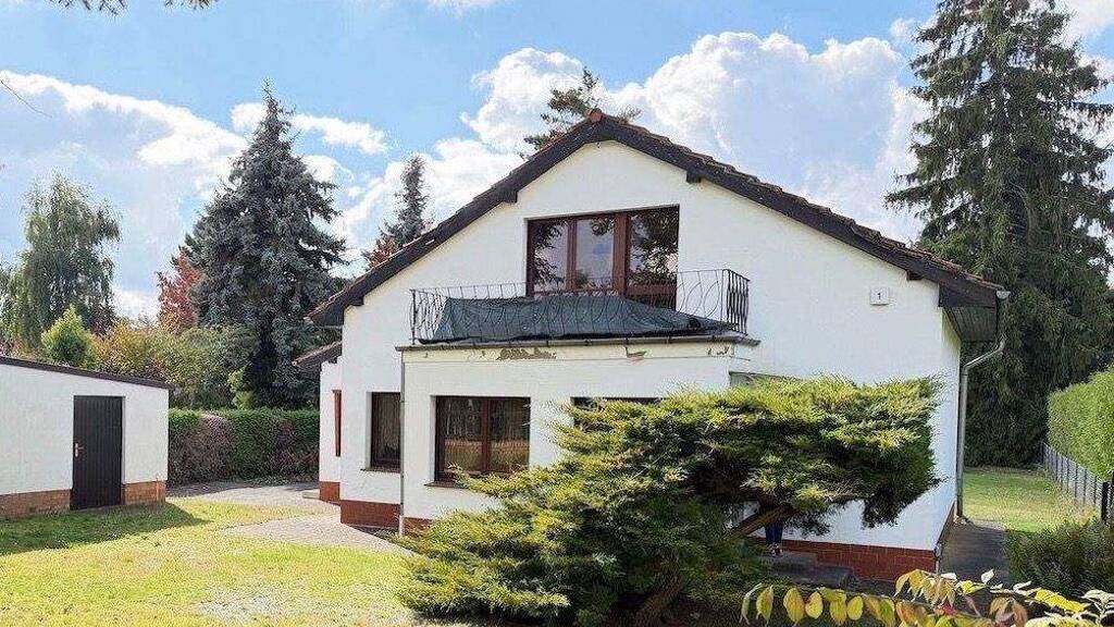 Das hier zum Kauf angebotene Einfamilienhaus wurde 1932 in Massivbauweise errichtet und verfügt über ein Erdgeschoss sowie ein Dachgeschoss. Das 1.195 qm großzügig geschnittene und gepflegte Grundstück lädt die Besitzer zum Erholen und Entspannen ein. Die Gesamtwohnfläche beträgt 98 qm und ist ideal für eine kleine Familie. Zum Wohnhaus gehören zwei Eingänge, die sich jeweils in den Anbauten des Hauses befinden. Über einen separaten Eingang gelangt man in einen Anbau an der Südostseite des Gebäudes. Dieser Anbau wird als Veranda genutzt und hat einen kleinen Keller, in dem sich eine Pumpenanlage für die Bewässerung der Gartenanlage befindet. An der Nordostseite des Objektes befindet sich der zweite eingeschossige Anbau, auf dessen Flachdach ein Balkon mit Blick in den Vorgarten liegt. Vom Haupteingangsbereich kommend, gelangt man in einen geräumigen Flur mit Zutritt in eine schmale Küche, vor der man dann in das geflieste Bad mit Badewanne, Waschplatz und WC gelangt. Ebenfalls im Flurbereich befindet sich ein Abstellraum für die Heizungsanlage sowie der Zutritt in ein geräumiges, großes Wohnzimmer. Dieser Raum verfügt über einen Echtholzparkettboden und 2 Fenster mit Blick in den hinteren Gartenbereich. An diesen Wohnbereich schließt sich der eingangs genannten Anbaus (Veranda) an. Eine offene Treppe vom Flur führt in das Dachgeschoss. Von hier sind ein Schlafraum mit Balkon sowie ein Kinderzimmer erreichbar. In den Räumen befinden sich in den Abseiten der Dachschrägen kleine Flächen, die als Abstell- oder Lagerflächen genutzt werden können. Eine Teilsanierung des Hauses fand Anfang 1990 statt, dazu gehören der Austausch von einzelnen Fenstern mit zugehörigen elektrischen Rollläden, der Einbau einer Ölzentralheizungsanlage sowie eine Dacheindeckung im Jahre 2012. Alle Medien liegen an. Zum großzügig geschnittenen Grundstück gehören im vorderen Teil des Gartens eine in Massivbauweise errichtete Garage mit 2 Räumen, ein Raum wird für die Unterbringung der Öltanks der Heizungsanlage genutzt. Im hinteren Gartenbereich befindet sich ebenfalls eine in Massivbauweise errichtete 48 qm große Hobbywerkstatt mit Zugang über ein zweiflügliges Tor. Diese helle, geräumige Werkstatt bietet genügend Platz für Hobbys jeglicher Art.