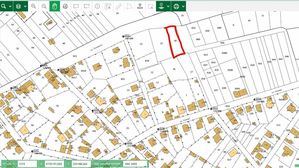 Ein im Katasterplan eingetragenes Grundstück liegt innerhalb der Grenzen des genehmigten Regulierungs- und Entwicklungsplans für den Bezirk Chelopechene, genehmigt durch die Verordnung RD-09-020/07.02.1990. vom Vorsitzenden des Exekutivkomitees des Volksrats von Kremikovtsi.