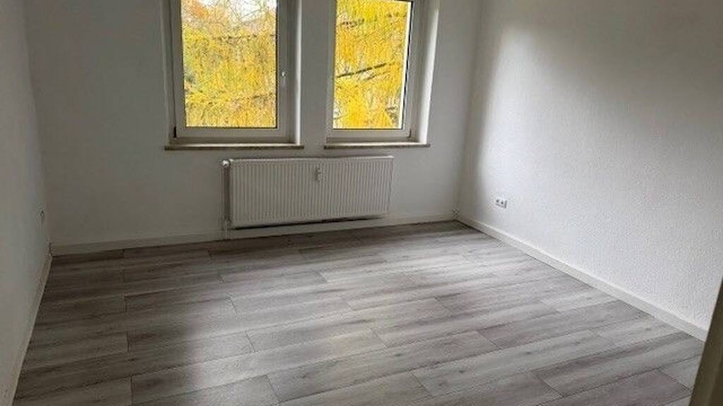 frisch renoviert 3 Raum Wohnung, Bad mit Fenster , Küche mit Fenster, weiße Wände und neuer Bodenbelag.