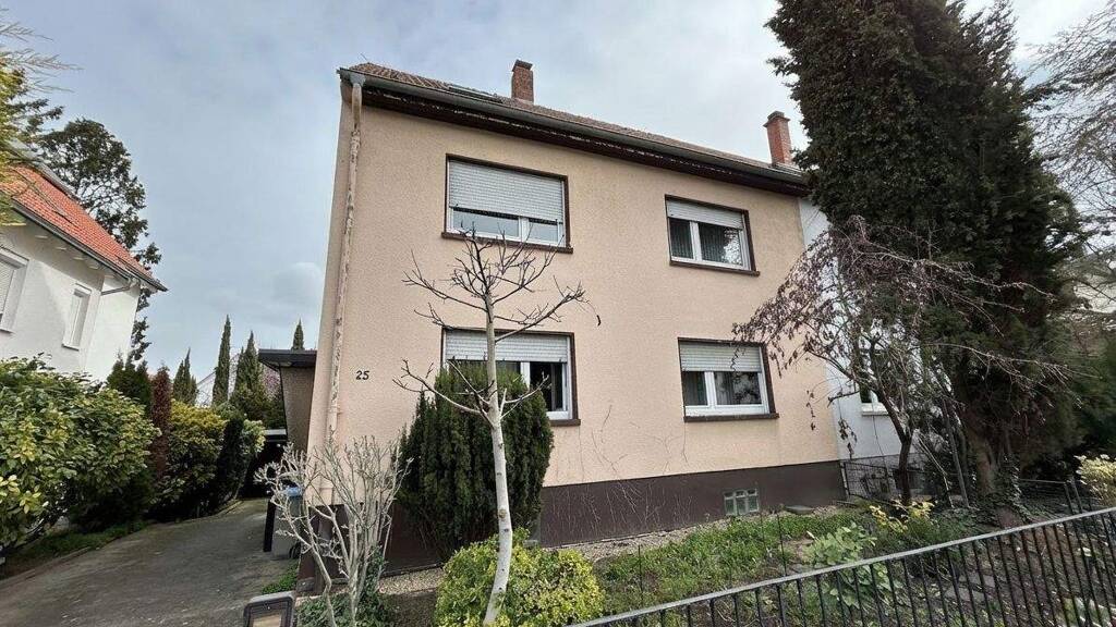 In attraktiver Wohnlage von Mannheim-Neckarau befindet sich dieses sanierungsbedürftige Zweifamilienhaus auf einem ca. 421 m² großen Grundstück. Die Immobilie wurde 1956 in zweigeschossiger Massivbauweise errichtet, ist voll unterkellert und bietet eine aktuelle Wohnfläche von ca. 148 m² sowie zusätzliche Nutzflächen im Kellerbereich und Garage von rund 80 m².
