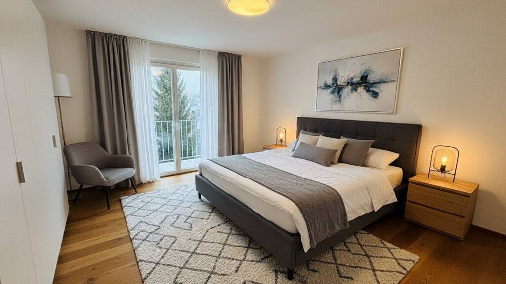 Die Wohnung beeindruckt durch zwei lichtdurchflutete Zimmer, die Ihnen ausreichend Raum für individuelle Gestaltung und Entfaltung bieten. Die großzügigen Fenster ermöglichen einen atemberaubenden Fernblick, der jeden Tag zu einem besonderen Erlebnis macht. Die modernen Fliesen und der stilvolle Parkettboden verleihen den Räumen eine elegante Note und sorgen für eine behagliche Atmosphäre.