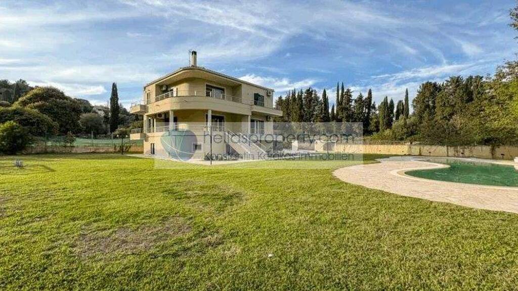 Ausgezeichnete geräumige Villa von 335 m² mit Pool und Panoramaweitblick im Südwesten von Korfu.