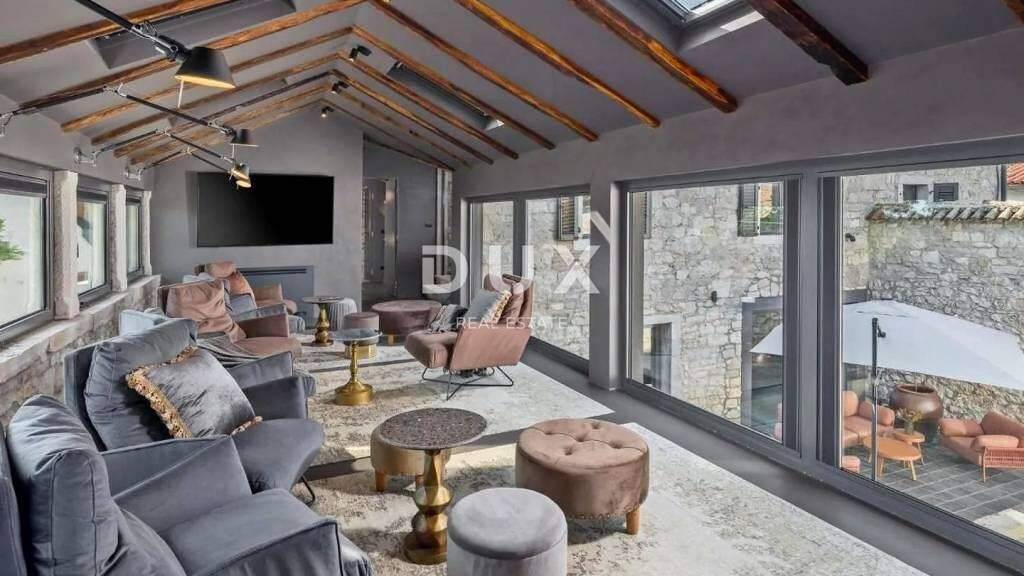 Eingebettet in ein angenehmes mediterranes Klima, im Herzen der westlichen Küste Istriens gelegen, erstreckt sich die antike Stadt Porec mit ihrer Küste voller unberührter Naturschönheiten, Landschaftsparks, Pinien- und Eichenhainen, die bis ans Meer reichen, entlang der sich klares Meer, Strände, Buchten und Inseln abwechseln, über eine Fläche von 139 km und besteht aus 58 Siedlungen. Mit der Identität einer urbanen Küstenstadt ist Porec eine Stadt der Kultur, des Sports, der Unterhaltung, des Tourismus und der wahren Gastfreundschaft. Eine der attraktivsten Städte des kroatischen Tourismus, die auf einzigartige Weise die natürliche Schönheit Istriens, ein reiches kulturelles und historisches Erbe und die modernsten Annehmlichkeiten eines Top-Reiseziels verbindet. Die Harmonie des Altstadtkerns, der ein Kulturdenkmal ist, mit einem der berühmtesten istrischen Kulturdenkmäler, der Euphrasius-Basilika, die zum UNESCO-Weltkulturerbe gehört, und den am besten erhaltenen und ausgestatteten Touristensiedlungen an der Adria bildet ein Mosaik unvergesslicher Erlebnisse. Porec ist eine Stadt, die viel mehr ist als ein Sommerziel mit Sonne und Meer. Porec ist eine Stadt, die auf die Bedürfnisse der Menschen zugeschnitten ist. Eine Stadt, in der es einen ständigen Impuls gibt, die Lebensbedingungen zu verbessern und den Fortschritt in verschiedenen Bereichen voranzutreiben. Eine Stadt, die ein angenehmer, sicherer und gepflegter Wohnort ist, in dem jeder seinen Platz findet, eine Stadt ohne Zusatzsteuern mit hoher sozialer Sensibilität für alle Generationen. Unweit der Stadt Porec steht ein Designer-Steinhaus zum Verkauf. Die Mikrolage bietet das authentische Erlebnis einer istrischen Kleinstadt, Intimität und Erholung von Hektik und Lärm und ist gleichzeitig nah genug am Meer und den dynamischen Städten Istriens mit zahlreichen Annehmlichkeiten. Das alte, schöne Steingebäude hat ein neues Aussehen erhalten, und seine architektonische Vergangenheit ist nun zeitlos und verbindet auf unaufdringliche Weise Tradition mit Moderne. Das Haus erstreckt sich über zwei Etagen und besteht aus einem Wohnzimmer, einer Küche mit Esszimmer, vier Schlafzimmern mit eigenen Bädern, einem Billardzimmer, zwei Gästetoiletten, einer Waschküche und Technikräumen. Dieses außergewöhnliche Anwesen ist ein wahres Juwel, das den Geist der Vergangenheit, die ländliche und beruhigende Umgebung, das unbeschwerte Leben in Istrien und den Luxus des modernen Lebens vereint und stellt eine außergewöhnliche Investitionsmöglichkeit sowie eine Gelegenheit für ein idyllisches Familienleben dar.
