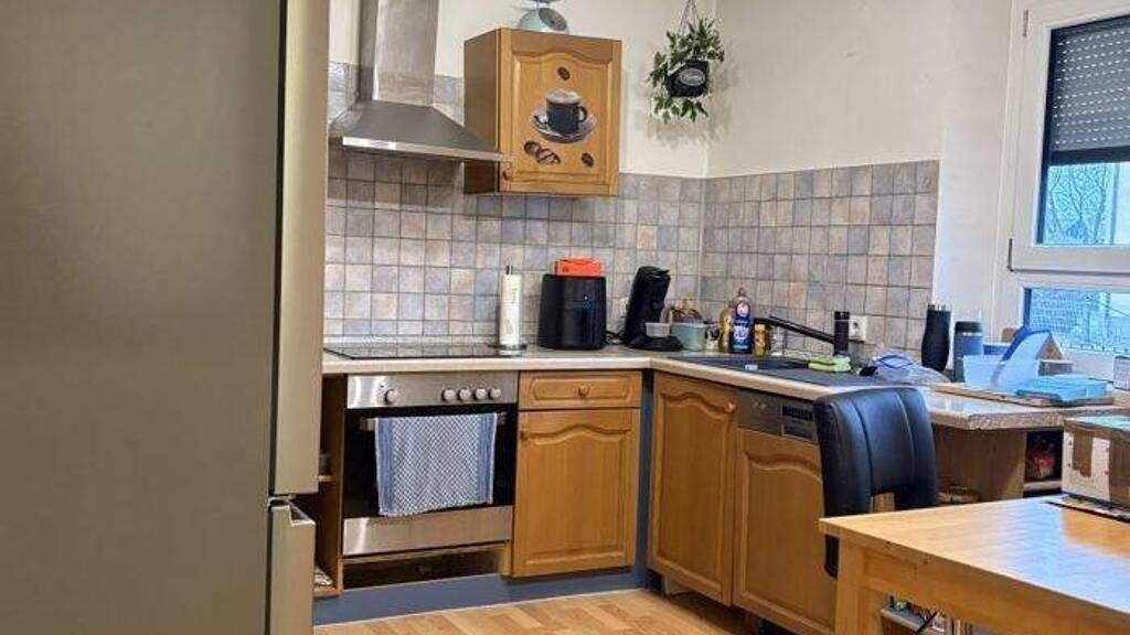 Zum Verkauf steht ein weitgehend gepflegtes Wohnhaus mit durchdachter Raumaufteilung und funktionaler Ausstattung. Der Eingangsbereich führt in einen Flur, von dem aus sich direkt auf der rechten Seite die Küche befindet - praktisch angeordnet und gut in den Wohnalltag integriert.