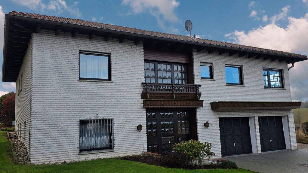 Das Einfamilienhaus mit Einliegerwohnung im Untergeschoss ist ein Haus in Massivbauweise mit Verklinkerung der Außenfassade. Neben der hervorragenden Wohngegend ist auch die in 5 Autominuten zu erreichende Autobahnanbindung des Ortes hervorzuheben. Im Haus werden die sehr großzügigen Innenräume alle durch Fußbodenheizung (Flüssiggasheizung) geheizt. Alle Räume des Hauses haben Fenster ! Das Wohnzimmer bietet mit einer sehr großen Terrassentür einen herrlichen Blick in den bis dato durch Gärtnerhand gepflegten Garten. Im Innenbereich sorgt ein offener Kamin (wasserführend) für eine angenehme Atmosphäre. Der direkt angrenzende Raum mit Essbereich und Küche bietet viel Platz für Ideen. Mit über 60 qm ist die im Untergeschoss integrierte Garage sehr großzügig gestaltet und ist bequem natürlich auch von Innen über die Diele des Hauses zu erreichen. Neben der Diele findet sich eine integrierte Einliegerwohnung, die seit Bau nur als Gästezimmer genutzt wurde. Abgerundet wird der Bereich durch einen kleinen Raum mit Küchenvorbereitung, einem Bad mit Dusche, sowie einem Heizraum und einer sehr großen Wäschekammer, von der man in den im Garten befindlichen extra angelegten Wäscheplatz erreicht. Im Obergeschoss finden sich Eltern und Kinderzimmer, 2 Bäder beide mit Dusche (1x mit zusätzlicher Wanne), Büro, Wohnzimmer mit Kamin , Zimmer mit Essbereich und Küche, Abstellraum und Garderobe. Der Dachboden ist voll isoliert und bietet nochmal sehr viel Staufläche.