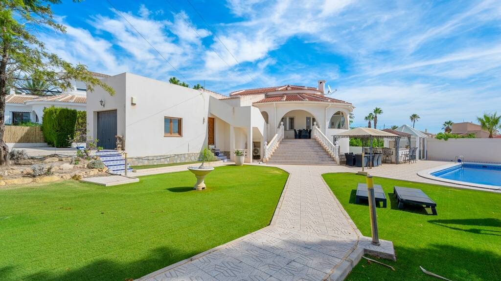 Wir präsentieren Ihnen diese spektakuläre freistehende Villa in Ciudad Quesada, ideal sowohl als Dauerwohnsitz als auch als Ferieninvestition. Auf einem großen, privaten Grundstück mit sorgfältig angelegten mediterranen Pflanzen und großzügigen Außenbereichen vereint diese Immobilie Komfort, Privatsphäre und Outdoor-Lifestyle. Hauptmerkmale: 5 geräumige Schlafzimmer und 3 Badezimmer, verteilt auf das Haupthaus und ein funktionales Untergeschoss. Privater Pool, umgeben von Terrasse, Garten und Ruhebereich. Bar und Küche im Freien - ideal für Familien- oder Freundestreffen. Steingrill am Pool. Geschlossene Garage und verschiedene Abstellräume. Klimaanlage in mehreren Räumen. Ganzjährige Heizung. Nur wenige Gehminuten vom Recorral Park entfernt, einer natürlichen Umgebung mit See, Wanderwegen und Erholungsgebieten, die zum Spazierengehen oder Picknicken einladen. Darüber hinaus liegt die Villa ganz in der Nähe des renommierten Golfplatzes La Marquesa und nur wenige Kilometer von Geschäften, Restaurants und allen Dienstleistungen entfernt. Ciudad Quesada ist eine der begehrtesten Wohngegenden an der südlichen Costa Blanca und bekannt für ihr internationales Flair, die Nähe zu den Stränden von Guardamar und ihre hervorragende Lebensqualität. Suchen Sie eine Villa mit viel Platz, Privatsphäre, einem traumhaften Außenbereich und einer unschlagbaren Lage? Das ist Ihre Chance. Kontaktieren Sie uns für weitere Informationen oder um einen Besichtigungstermin zu vereinbaren. Ihr nächstes Zuhause wartet auf Sie!