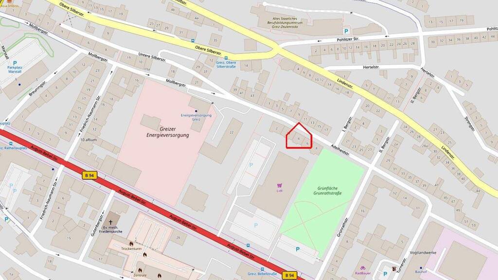 Zentrumsnahe Lage in der Kreisstadt Greiz. Zum Einkaufen laufen Sie nur wenige Meter zu Lidl und auch ein Edekamarkt ist in Sichtweite. Das Zentrum mit seinen Schlössern und Museen, der Stadtkirche, den Einkaufsmöglichkeiten, Schulen, Kindergärten, Banken, Behörden, Ärzten, Gaststätten, Bus- und Bahnanbindung, der Vogtlandhalle sowie dem sehenswerten Greizer Park ist in 5-10 Minuten fußläufig zu erreichen.