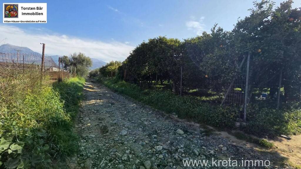 In Tympaki steht ein 4.000 m² großes Grundstück mit ca. 200 Bäumen (Orangen-, Zitronen- und Mandarinenbäume) zum Verkauf. Es befindet sich in guter Lage mit Zufahrt über einen Feldweg und eignet sich für die landwirtschaftliche Nutzung.