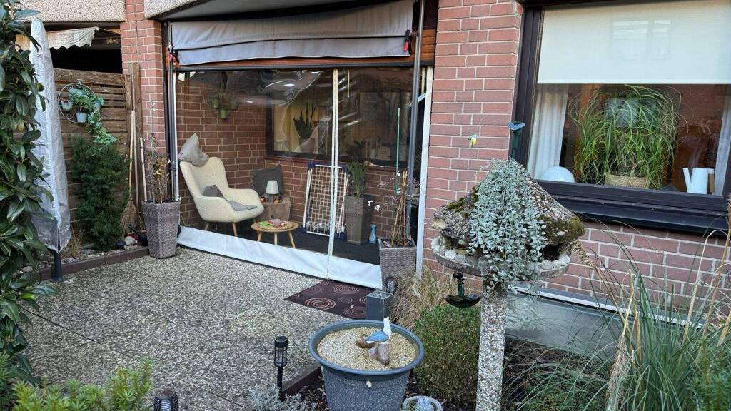Das helle Wohnzimmer begeistert mit einem großen Fenster- und Türelement und direktem Zugang zur sonnigen West-Terrasse. Hier finden Sie den perfekten Ort für entspannte Stunden am Abend. Auch das ruhige Schlafzimmer ist mit Design-Vinylboden ausgestattet und bietet ausreichend Platz für Ihre persönliche Einrichtung. Eine geräumige Diele empfängt Sie freundlich und bietet zusätzlichen Stauraum, ergänzt durch einen praktischen Abstellraum.