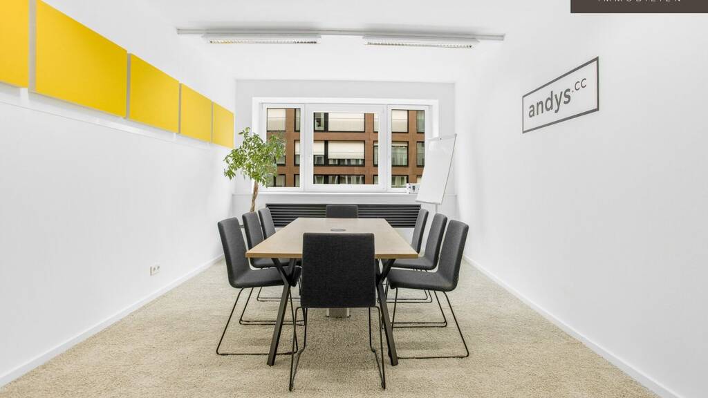 11 Private-Offices mit 35 Arbeitsplätzen ab 15 m², ein professionell ausgestatteter Meetingraum für bis zu 8 Personen, einen Web-Conference Room sowie Phone Booths und Community- und Networking Areas bietet das Objekt.