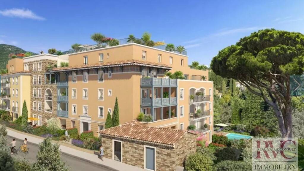 Eine einzigartige und charmante neue Residenz mit Apartments mit einem bis drei Schlafzimmern, einem Gemeinschaftspool und Landschaftsgärten, nur 10 Gehminuten vom attraktiven Stadtzentrum von Cavalaire sur Mer und dem Strand entfernt. Die hellen und geräumigen Apartments verfügen über Terrassen oder Gärten und die vier Penthouse-Apartments haben sogar einen herrlichen Meerblick und verfügen über sehr große Terrassen und Solarien, von denen aus Sie diese genießen können. Eine Tiefgarage mit Ladestationen für Elektrofahrzeuge ist im Preis inbegriffen und der Zugang erfolgt über einen codierten Ausweis und ein Bildtelefon. Diese energieeffizienten Apartments sind standardmäßig mit großen Erkerfenstern, elektrischen Jalousien, großen Fliesen und beheizten Handtuchhaltern ausgestattet. Nutzen Sie dies als Haupt- oder Zweitwohnsitz oder wenn Sie möchten, können Sie einen Servicevertrag mit der Agentur des Bauträgers abschließen, die Quasi-Hotel-Services und Concierge für kurzfristige Buchungen bieten. Wenn Sie dieses Mandat unterzeichnen und Ihre Wohnung jedes Jahr für mindestens einige Wochen vermieten, profitieren Sie von der Rückerstattung der gesamten im Kaufpreis enthaltenen Mehrwertsteuer (20%), aber natürlich auch der erhaltenen Mieteinnahmen abzüglich der Provision. Die Unternehmensgruppe unterstützt Sie auch bei Verwaltung, Einrichtung und Finanzierung Ihrer Wunschimmobilie .