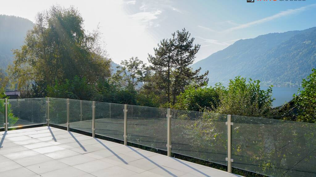 Sie betreten Ihr neues Kärntner Domizil über die sonnenverwöhnte Terrasse (75,34 m²) von der Seeseite aus. Dank der vortrefflich geschnittenen L-Form ist die erhöht gelegene Terrasse blickgeschützt, während das Wohnzimmer weiter nach vorne exponiert und so noch einmal mehr in Seerichtung gelegen ist. Über die Schwelle betreten Sie Ihr gepflegtes, sauberes und gemütliches Landhaus.
