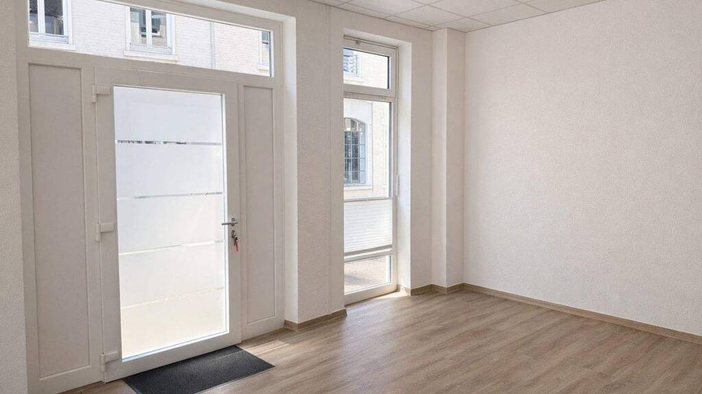 Die Räume werden derzeit als Büros genutzt, verfügen jedoch bereits heute über eine großzügige Raumaufteilung und eine schwellenreduzierte Ausstattung, die sich hervorragend für eine zukünftige Wohnnutzung eignet.