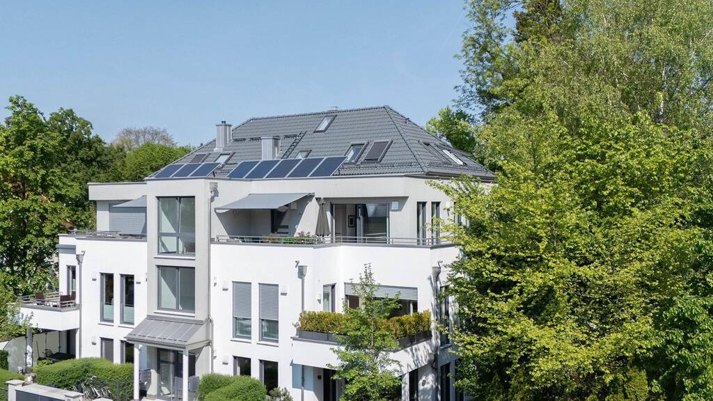 » Penthouse-Wohnung über zwei Ebenen mit ca. 135 m² Wohnfläche » Wohnanlage mit nur sechs Parteien » wenige Minuten vom Zentrum Münchens entfernt, » ruhige, baumgesäumte Wohnstraße » Sonniger Wohn-Essbereich ca. 27 m² » Dachterrasse ca. 56 m² und schönen Blick » Separate, zum Wohnbereich geöffnete Küche mit viel Stauraum und Markengeräten von Miele, inklusive Backofen, Dampfgarer, Induktionsherd mit integriertem Bora Dunstabzug » Schlafzimmer mit separater Ankleide und direktem Terrassenzugang » Luxusbad mit großzügiger Badewanne, begehbarer Walk-in-Dusche, zwei eleganten Waschtischen, Toilette und Bidet » Zweite Wohnebene im Dachgeschoss mit zwei hellen Zimmern und modernem Duschbad » Barrierefreier Aufzug bis ins Untergeschoss » Breiter Tiefgaragenstellplatz mit eigenem Stromanschluss und vorbereitetem Anschluss für eine Wallbox (E-Mobilität) » Eigenes Kellerabteil » Gemeinschaftlich nutzbare Wasch- und Fahrradräume