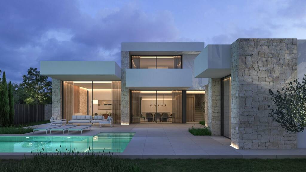Entdecken Sie diese exklusiven modernen Villen in Dénia, die Komfort, Stil und Funktionalität in einer privilegierten Lage bieten. Mit ihrer zeitgenössischen Architektur, den eleganten Natursteindetails und den großen Fenstern sind diese Häuser in natürliches Licht getaucht und schaffen helle und einladende Räume. Der private Landschaftsgarten und der Swimmingpool bieten den perfekten Rahmen, um das ganze Jahr über den mediterranen Lebensstil zu genießen.