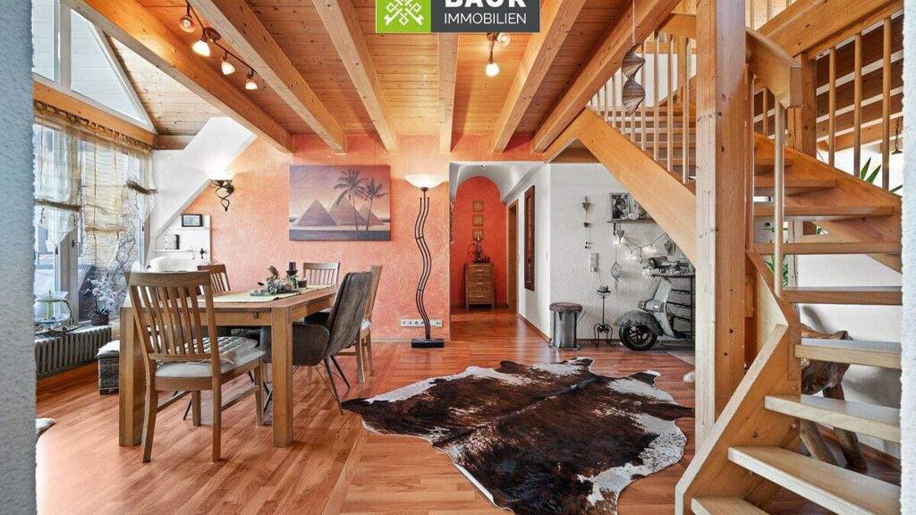 Entdecken Sie diese historische Residenz im beliebten Ortsteil Bergerhausen in Biberach. Das Gebäude, das 1498 in solider Bauweise errichtet wurde, vereint auf beeindruckende Weise den nostalgischen Charme vergangener Epochen mit den Ansprüchen an modernes Wohnen. Vor rund 30 Jahren wurde die Wohnung ausgebaut und bietet heute auf ca. 135?m² Wohnfläche ausreichend Platz für anspruchsvolle Wohnbedürfnisse. Die Maisonette-Wohnung verfügt über einen eigenen Hauseingang, sodass Sie wohnen können wie in einem Reihenhaus - mit viel Privatsphäre und Unabhängigkeit. Auf zwei Etagen umfasst die Wohnung insgesamt 4 Zimmer. Der lichtdurchflutete Essbereich lädt zu geselligen Stunden ein und eröffnet Zugang zu einer Loggia, auf der Sie entspannte Momente im Freien genießen können. Die Küche bietet ausreichend Platz für kulinarische Entfaltung und gemeinschaftliches Kochen. Das großzügige Wohnzimmer, das sich im oberen Bereich der Wohnung befindet, ergänzt das Gesamtbild und sorgt für eine harmonische Atmosphäre. Neben der großzügigen Wohnfläche verfügt das Anwesen über eine eigene Garage sowie einen Stellplatz. Die Wohnung wird über eine moderne Gas-Zentralheizung aus dem Jahr 2020 beheizt, die für angenehme Temperaturen zu jeder Jahreszeit sorgt. Das gesamte Anwesen ist nach WEG aufgeteilt und besteht aus insgesamt 3 Einheiten. Diese Wohnung hat einen Anteil von 22?% und bietet nicht nur ein gemütliches Zuhause, sondern auch ein hohes Maß an Privatsphäre. Die gelungene Verbindung von historischer Architektur und modernen Annehmlichkeiten macht dieses Zuhause zu einem einzigartigen Rückzugsort.