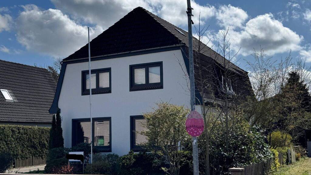 Das Zweifamilienhaus befindet sich in zentraler Lage in der Dorfmitte von Jübek.