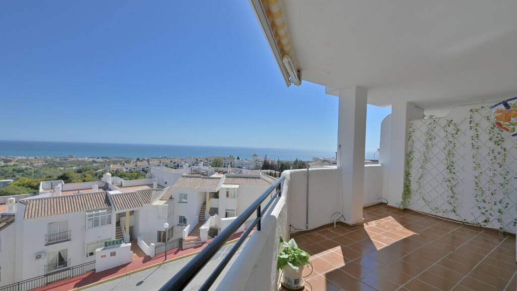 In dem begehrten Viertel des oberen Calahonda bietet dieses wunderschöne Zwei-Zimmer-Apartment einen atemberaubenden Panorama-Blick auf das Meer sowie eine helle und geräumige Raumaufteilung in allen Zimmern. Die Unterkunft besteht aus zwei Doppelzimmern, davon das Hauptzimmer en suite, während ein separates Badezimmer das zweite Schlafzimmer bedient. Die Küche ist voll ausgestattet und verfügt über eine Waschküche, während das Wohnzimmer, groß und hell, über einen gemütlichen Kamin und direkten Zugang zu einer sonnigen, südlich ausgerichteten Terrasse verfügt. Die Terrasse ist auch mit dem Hauptzimmer verbunden, sodass Sie die spektakulären Meerblicke sowohl von innen als auch von außen genießen können. Zu den weiteren Merkmalen gehören Klimaanlage im Wohnzimmer und im Hauptschlafzimmer. In einer gepflegten Wohnanlage können die Bewohner zwei Pools und grüne Gärten nutzen. Die Gemeinschaftsparkplätze liegen günstig in der Nähe des Eingangs. Ideal gelegen nur wenige Schritte vom beliebten Komplex Miel y Nata entfernt, der drei Restaurants, eine Bar, eine Bushaltestelle und eine Taxistation bietet. Der Strand und eine breite Palette an Dienstleistungen befinden sich nur drei Autominuten entfernt.