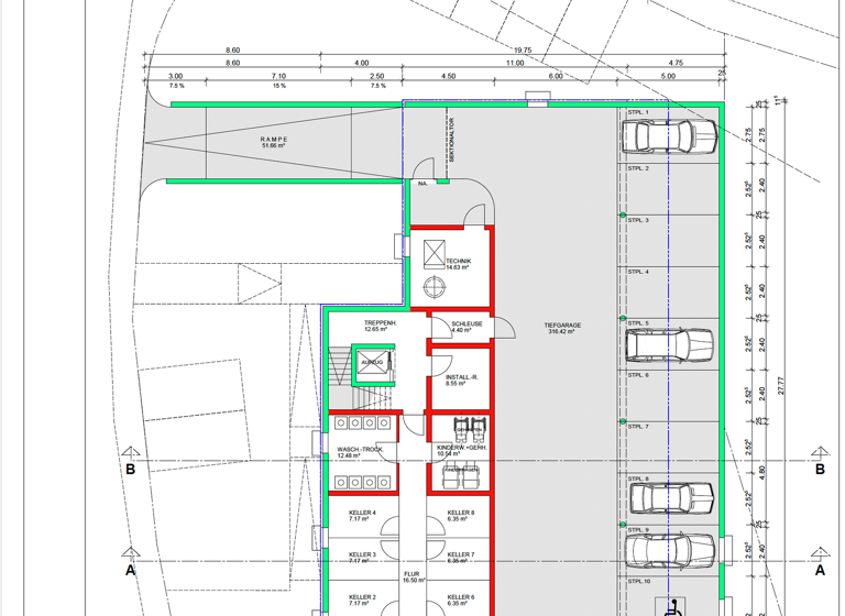 Ein besonderer Fokus liegt auf Barrierefreiheit und Komfort: Ein Personenaufzug verbindet alle Geschosse - von der Tiefgarage bis ins oberste Stockwerk - und gewährleistet einen bequemen Zugang zu allen Einheiten. Dies macht das Gebäude nicht nur für Senioren und Menschen mit Mobilitätseinschränkungen interessant, sondern auch für Bewohner, die heute schon an morgen denken. Im Untergeschoss des Gebäudes entsteht eine moderne Tiefgarage mit insgesamt zehn geplanten Pkw-Stellplätzen. Die Tiefgarage bietet nicht nur Schutz vor Witterung, sondern auch eine direkte Anbindung an das Treppenhaus und den Aufzug - ein klarer Mehrwert in puncto Komfort und Sicherheit.