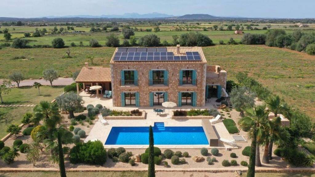 Exclusiva, finca en una parcela de ensueño cerca de Llucmajor..FOTOS DE UN PROYECTO IDÉNTICO YA TERMINADO.La finca es definitivamente un objeto especial para los amantes de las más altas exigencias está a la espera de un.nuevo propietario que busca alta calidad y equipamiento de lujo..Uno se da cuenta con esta joya de casa de campo que fue construida con gran pasión y sangre de corazón para el.para su propio uso por la pareja propietaria con todo lujo de detalles..Sólo se utilizaron materiales de alta calidad y se prestó atención a la calidad..Esta casa de ensueño no deja nada que desear: encontrará paredes de piedra típicas mallorquinas,.arcos de piedra natural, una fachada exterior de piedra con aislamiento exterior, un sótano para la casa principal.y terrazas, un lavadero para los servicios de construcción de alta calidad,.ventanas de plástico de alta calidad con triple acristalamiento con aspecto de madera e igualmente de alta calidad.turquesa persa (de bajo mantenimiento y resistentes a la humedad), preinstalación de aire acondicionado.preinstalado, sistema de alarma, conexiones a Internet, sistema de sonido y mucho más..Otras características son techos altos, puertas altas de teca, frentes de teca (blanca) para los armarios empotrados.los armarios empotrados, suelos de mármol antiguo de alta calidad en toda la casa, baño principal con XL.bañera, todos los baños, duchas revestidas de mármol, así como grifería Grohe,.chimenea en el salón, cocina de lujo totalmente equipada con isla de cocción bien pensada, ya que.integrados están el fregadero, la placa de cocción y un extractor de techo..Una agradable piscina de agua salada de 60 m2 con llenado y dosificación automáticos..En la casa, todos los revestimientos exteriores y columnas son de piedra natural mallorquina. Este.elaborado acabado se refleja también en el bonito diseño del jardín..La lista completa de equipamiento se puede explicar con mucho gusto con una cita de inspección personal..cita..Ser autosuficiente significa ser libre...Ubicación.LLUCMAJOR:.El municipio de Llucmajor es el más grande en términos de superficie de la isla mediterránea de Baleares. La.encuentra a unos 15 kilómetros al sureste del aeropuerto de Palma, a los pies del Puig de Randa..Randa. Llucmajor es un tranquilo pueblecito en el campo con callejuelas estrechas y un.mercado los miércoles, viernes y domingos. La renovada sala de la lonja.alberga varios departamentos de la administración municipal, incluida la oficina de turismo. La.plaza del mercado frente al ayuntamiento se terminó en 2010 y es una zona sin coches. .Descripción del equipamiento.- La mejor calidad en todos los oficios ( aislamiento exterior, revestimiento de piedra natural, control de la.electrónica, cocina exclusiva, grifería Grohe y Geberit...).- piscina climatizada de 60m2 con llenado automático 12x4,5m.- riego automático del jardín.- bonito diseño de jardín con olivos viejos, palmeras y plantas autóctonas.- molino de viento.- generador de emergencia.-Fotovoltaica con acumuladores.-pozo propio.-Piscina cubierta.-Iluminación exterior jardín y camino de entrada.-Puerta de entrada eléctrica con cámara