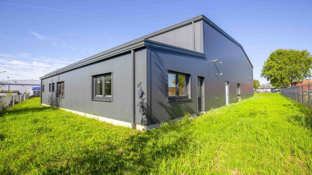Die moderne Gewerbehalle mit Büroräumen befindet sich in Elmenhorst in einem Industriegebiet.