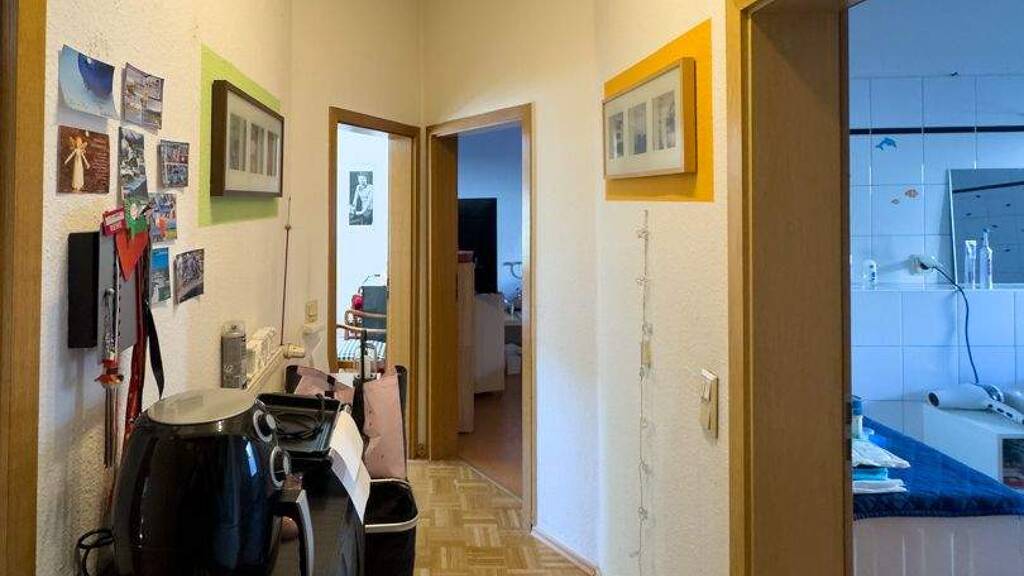 •Drei nahezu identische Wohnungen mit 2 Zimmern, Küche, Bad •Wohnungsgrößen: ca. 54–56 m² •Badezimmer jeweils mit Badewanne, WC, Dusche und Waschmaschinenanschluss •Bodenbeläge: Laminat und Vinyl •Fenster: Holz, doppelt verglast •Erdgaszentralheizung, Baujahr 1997 •Gepflegter Allgemeinzustand, einfache Ausstattung •Grundstücksgröße ca. 215 m² •Kein Denkmalschutz
