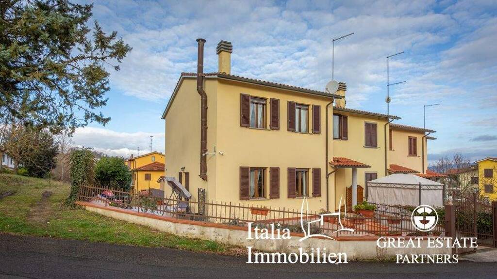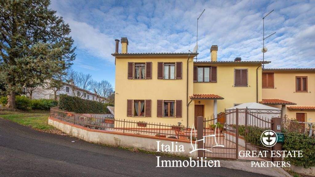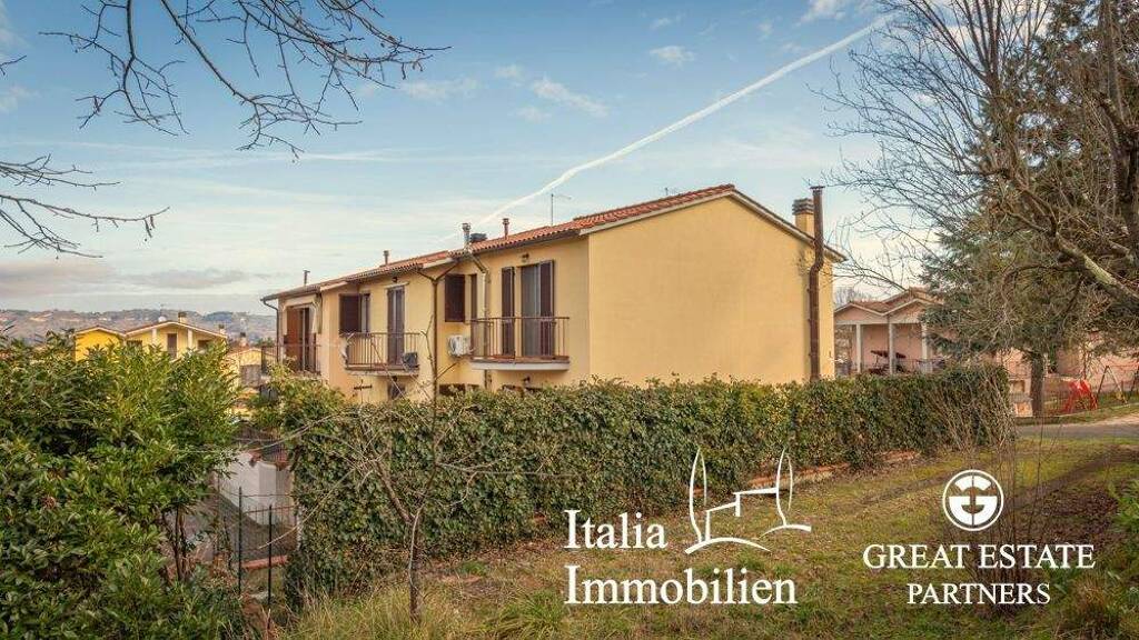 Villa mit Hofbereich, Terrasse und Garten in einer Reihenhausanlage, an drei Seiten freistehend und mit separatem Eingang. Das kürzlich erbaute Haus mit privatem Zugang befindet sich am Ende einer Reihenhausanlage. Das komplett bewohnbare und ausgebaute Haus verfügt über einen großzügigen Außenbereich, der teils als Garten, teils als gepflasterte Terrasse gestaltet ist. Der gesamte Bereich ist umzäunt und gepflegt und steht zur alleinigen Nutzung bereit. Zur Immobilie gehört eine zweistöckige Wohnung mit über 100 Quadratmetern Wohnfläche. Im Erdgeschoss befindet sich ein heller und geräumiger Wohnbereich mit Wohnzimmer mit Kamin, Küche mit Essbereich, Badezimmer, Veranda und Terrasse. Der Schlafbereich umfasst ein Zweibettzimmer, ein Doppelzimmer mit Terrasse, ein Badezimmer und einen Raum, der derzeit als begehbarer Kleiderschrank/Abstellraum genutzt wird, aber auch in ein Arbeitszimmer mit Schlafcouch umgewandelt werden könnte. Im Untergeschoss befinden sich ein großer Mehrzweckraum, der sich ideal als Garage oder Keller-/Abstellraum eignet, ein Badezimmer, eine Waschküche und ein Abstellraum. Die Villa liegt in erhöhter, sonniger Lage und bietet bequemen Zugang sowie einen schönen Blick auf die Landschaft und die umliegenden Dörfer.