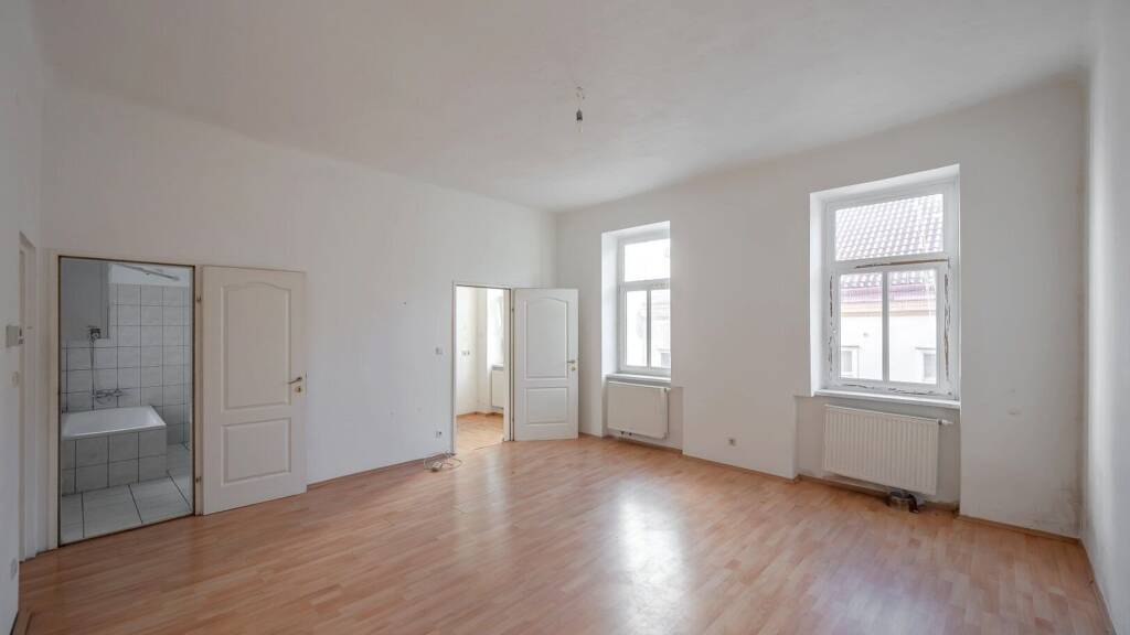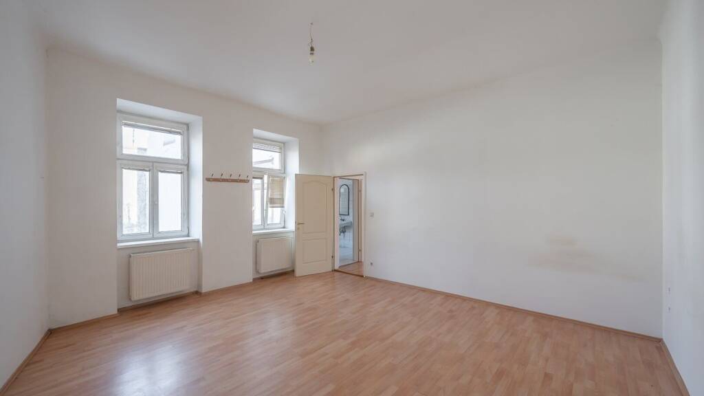 Zum Verkauf steht eine ca. 64 m² große, sanierungsbedürftige 2-Zimmer-Altbauwohnung im 4. Stock eines klassischen Wiener Altbaus.