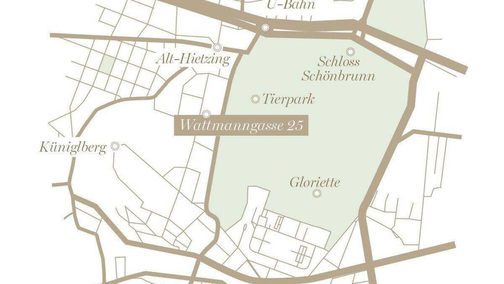 Die noble Wattmanngasse ist geprägt von historischen Bauwerken wie dem 1914 errichteten Schokoladenhaus mit seiner bemerkenswerten Fassadenverkleidung von Ernst Lichtblau und dem ehemaligen Atelier von Egon Schiele, in dem dieser bis zu seinem Tod im Jahr 1918 arbeitete. Der nur wenige Gehminuten entfernte Schlosspark Schönbrunn gilt als idyllischer Ort für Spaziergänge. Der Tiergarten, das Palmenhaus und die Orangerie bieten ein vielfältiges Freizeitangebot. Die Nahversorgung ist ausgezeichnet, mit erstklassigen Restaurants wie Plachutta und Mario Pasta-Grill-Bar in der Nähe, die kulinarische Genüsse bieten.