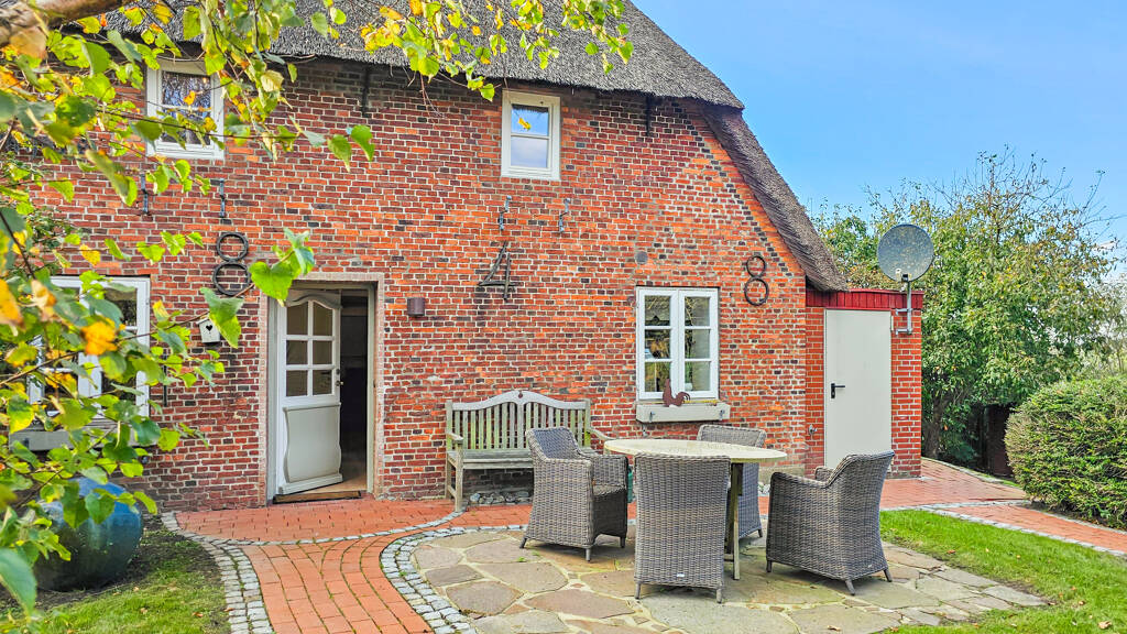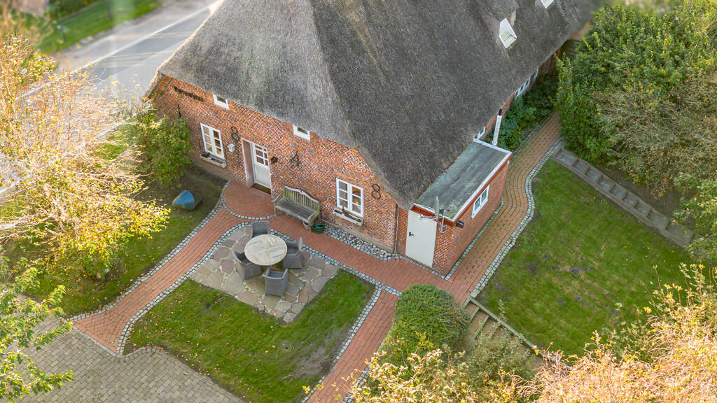 Einst diente der Holländerdeich seinen Bewohnern zum Schutz vor der rauen Nordsee, heute bietet er eine sagenhafte Aussicht in die nordfriesische Marsch. Schon beim Betreten des Grundstücks fällt einem der weite Blick nach Nordosten über die anliegenden Felder ins Auge und lässt einen kurz innehalten. Ein alter Baum- und Sträucherbestand sorgt für Gemütlichkeit und Privatsphäre im Garten. Sonnige Terrassen am Haus und am Fuße des Deiches laden zum Verweilen ein. Ein Garten- und ein Saunahaus sorgen für weiteren Komfort, auch in der kalten Jahreszeit. Das historische Langhaus wurde 1848 erbaut und im Laufe seiner Geschichte in zwei moderne Haushälften geteilt. Die zum Verkauf stehende Haushälfte, das "Amrumhaus", verfügt über eine Wohnfläche von insgesamt 145m², aufgeteilt auf eine Hauptwohnung mit 117m² und eine Einliegerwohnung mit ca. 28m². Derzeit werden beide Einheiten mit einer offenen Durchgangstür vereint. Durch die zwei separaten Hauseingänge, lässt sich die Einliegerwohnung jedoch auch unabhängig von der Hauptwohnung autark nutzen. Über die Giebelseite des Hauses betreten Sie die Hauptwohnung. Ein heller Eingangsbereich vereint hier die moderne Küche mit Sitzbereich, das erste der drei Badezimmer, hier mit Walk-in Dusche und Waschmaschine, die Treppe in das erste Obergeschoss mit zwei gemütlichen Schlafzimmern und den lang gestreckten Wohnbereich. Der Wohnbereich zieht sich über die gesamte Länge der Haushälfte und erstrahlt förmlich durch seine Ausrichtung nach Süden. Dänische Holzsprossenfenster transportieren den historischen Charakter des Hauses in sein modernes Inneres. Beginnend mit einem gemütlichen Essplatz, weiter in den Loungebereich mit modernen Polstermöbeln, in das Lesezimmer mit anmutendem Kaminsims und endend mit einem kleinen Arbeitszimmer. Hier findet die gesamte Familie für gesellige Stunden zusammen. In Anbindung an den Wohnraum geht es weiter mit einem weiteren Schlafzimmer und Duschbad auf dieser Ebene. Die besagte Verbindungstür ermöglicht es Ihnen von hier aus weiter in die Einliegerwohnung zu gehen. Ein kleiner Flur verbindet die separate Haustür mit dem Treppenaufgang in die Einliegerwohnung, welche im Obergeschoss liegt. Bestehend aus einem Wohn- und Esszimmer, einer Küche, einem Duschbad und einem Schlafzimmer, ist hier eine autark nutzbare Einheit entstanden. Die Zusammen- legung mit dem übrigen Obergeschoss wäre ebenfalls denkbar. Sie sind neugierig geworden und möchten mehr erfahren? Wir freuen uns auf Ihre Kontaktaufnahme!