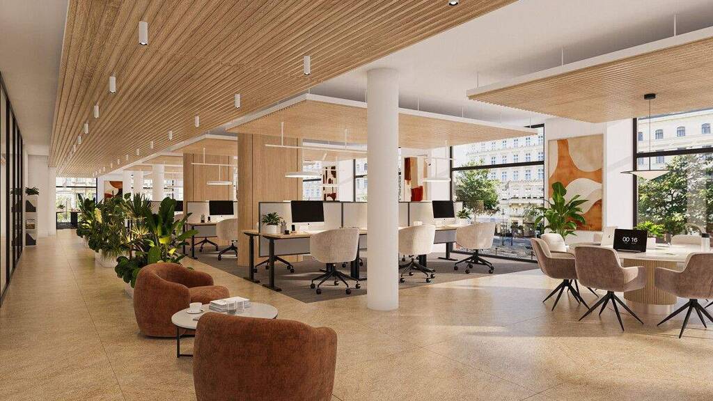 Das traditionsreiche Gebäude wird derzeit einer umfassenden Sanierung unterzogen und auf den neuesten Stand der Technik gebracht. Im Zuge dessen entstehen im ehemaligen Mall-Bereich des 1. Obergeschoßes moderne, zeitgemäße Büroflächen mit hoher Aufenthaltsqualität.