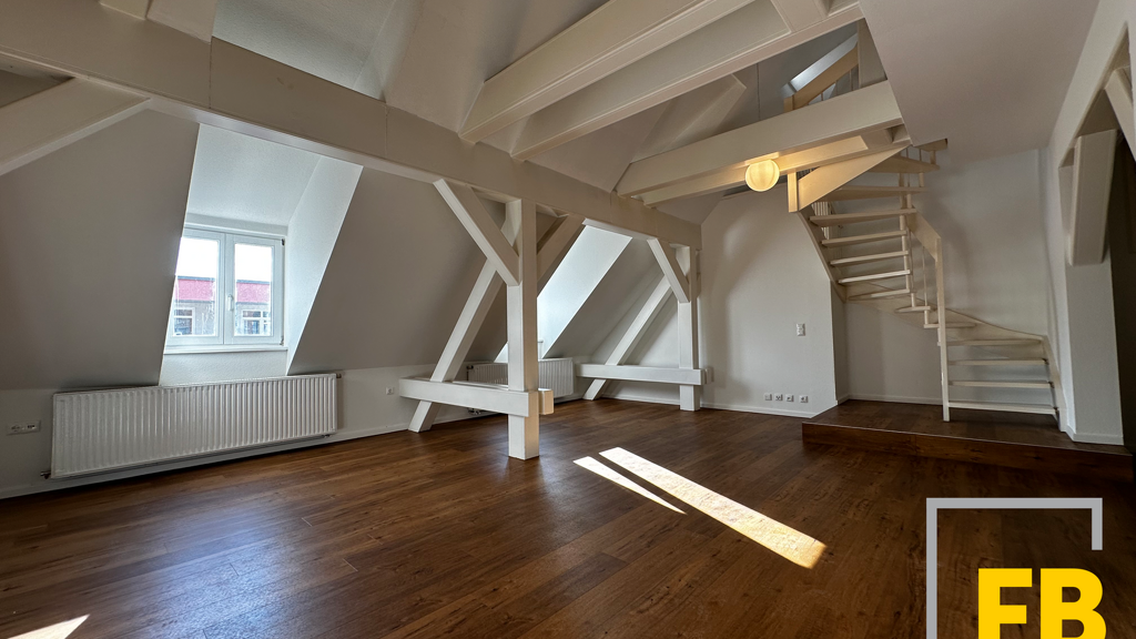Die Wohnung überzeugt durch eine großzügige Raumgestaltung, eine offene Galerieebene sowie zahlreiche Fensterflächen, die für eine helle und freundliche Wohnatmosphäre sorgen. Besonders reizvoll ist das Zusammenspiel aus modernen Elementen und authentischen Altbaudetails, wie beispielsweise sichtbaren Dachziegeln in einer der Dachschrägen.