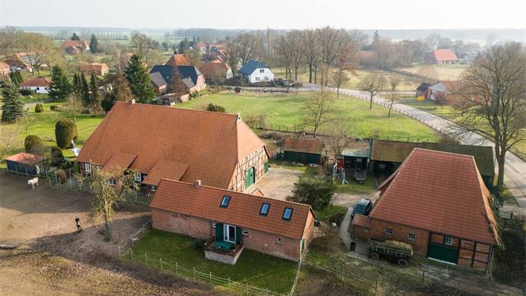 Inmitten der weiten Elbmarschlandschaft liegt Sumte - ein beschaulicher Ortsteil der Gemeinde Amt Neuhaus im Landkreis Lüneburg. Geprägt von alten Alleen, Fachwerkhäusern und landwirtschaftlicher Tradition, versprüht das Dorf einen ganz besonderen historischen Charme. Genau hier befindet sich dieser denkmalgeschützte Pferdehof, der sich harmonisch in das gewachsene Ortsbild einfügt.