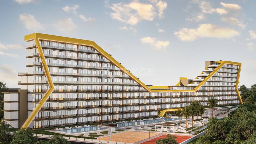 Auf einem 15.384 m² großen Grundstück in Antalya Altintas bietet verschiedene Wohnungen in einem Komplex mit vielen Annehmlichkeiten, wie Pools, Sport und Hobbybereiche und Pendeldienst zum Strand an