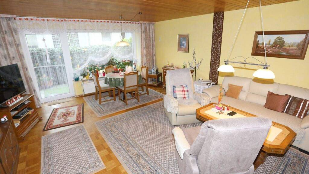 - Erdgeschosslage (Hochparterre im Eingangsbereich) - großes Wohn- und Esszimmer mit Ausgang auf die Terrasse - 3 Schlafräume - helles Tageslichtdusch- und Wannenbad - großer Kellerraum - Fenster erneuert ca. 2013 - Außenrollläden - eine Heizungsanlage für das ganze Haus (Baujahr 2024/2025) - eigene Garage