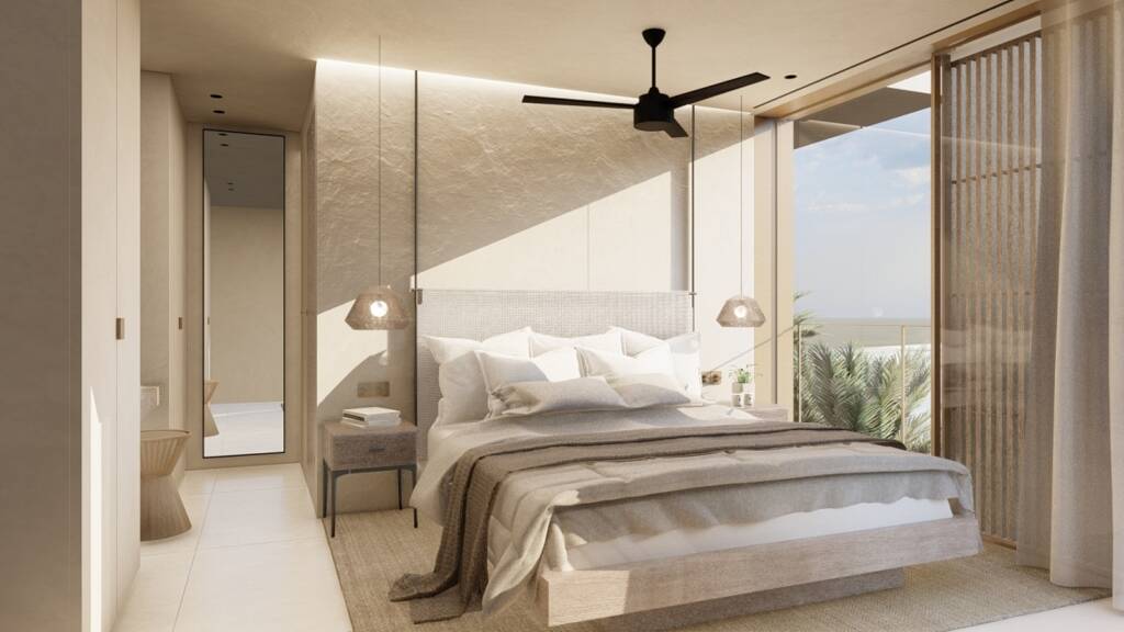 Multiple extraordinary newly built 3-bed apartments with garden and swimming pool, spread over two floors, with stunning views of the Talamanca Bay.