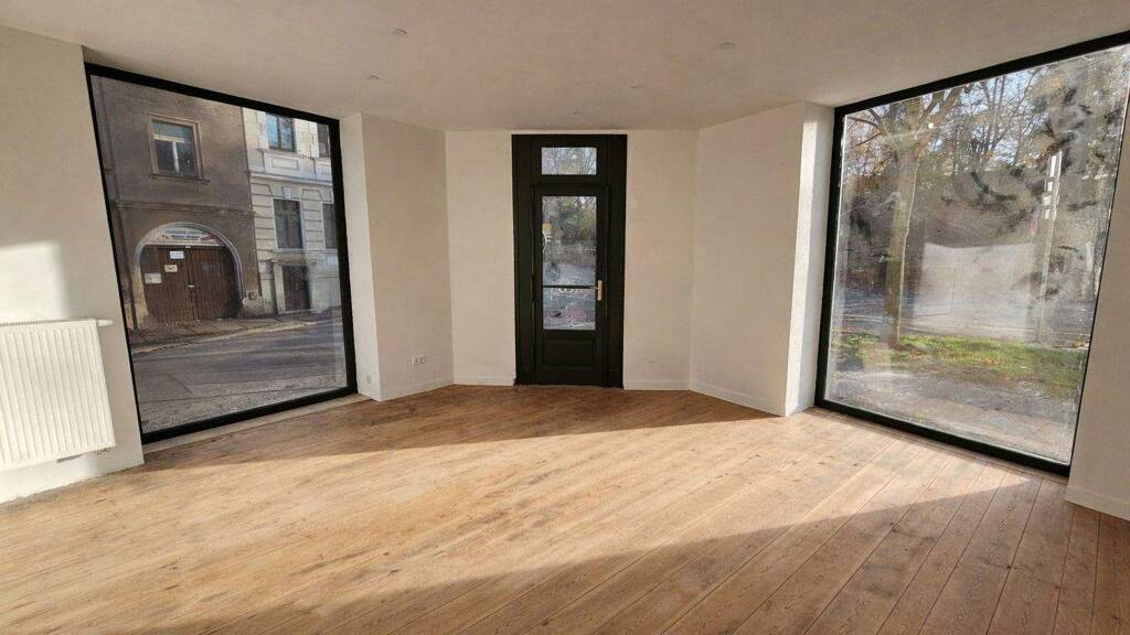 Mehrere große, neu erneuerte Schaufenster sorgen für eine ausgezeichnete Sichtbarkeit, bieten attraktive Auslageflächen und lassen viel Tageslicht in die Räume, was die Einheit besonders einladend und repräsentativ macht.