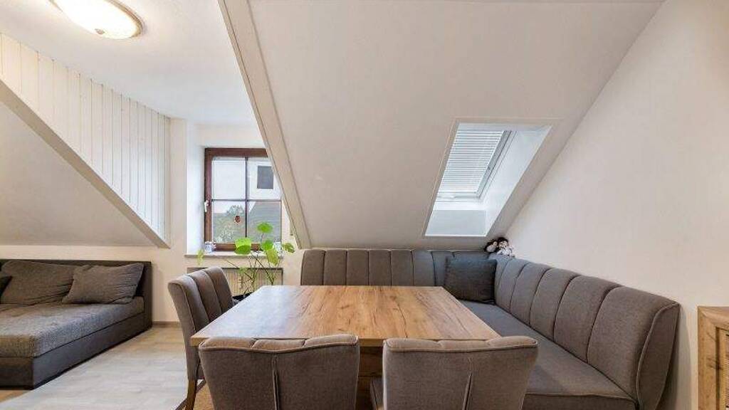 Objektbeschreibung Die Wohnung liegt im 2. Ober- und Dachgeschoss eines gepflegten Mehrfamilienhauses aus dem Baujahr 1986. Sie bietet ein helles Wohnzimmer, ein separates Schlafzimmer, eine Küche, ein Badezimmer mit Fenster sowie ein zusätzliches Gäste-WC. Ein Balkon sorgt für erholsame Stunden im Freien. Die Ausstattung umfasst eine Einbauküche, Laminatböden in den Wohnräumen sowie Fliesen in Bad, Küche und WC. Beheizt wird die Wohnung über eine Erdgasheizung, aktuell mit Energieklasse D. Ein Kellerraum sowie der direkte Zugang zum Speicher bieten zusätzlichen Stauraum.
